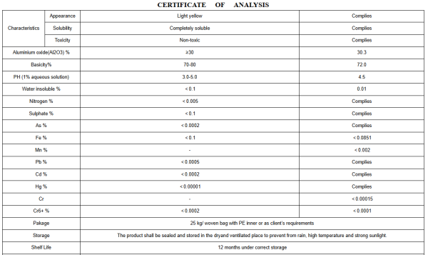 8. With low residual free aluminum content, the water purified by the polyaluminium chloride is in compliant with national standard.